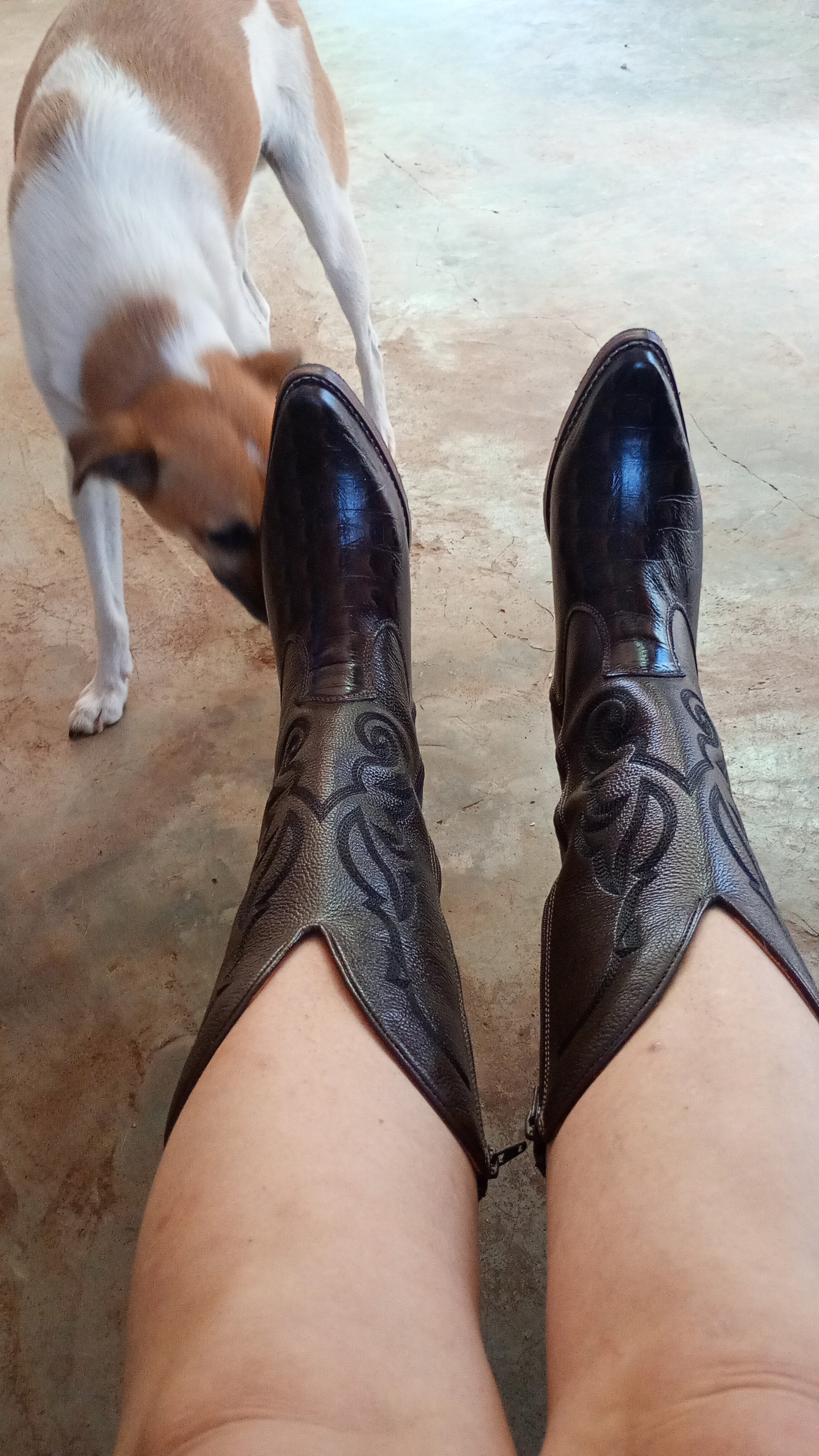 Bota Texana Feminina Country Couro Legítimo Bovino Dubai Café e Floater Café Bordado Linha Preto